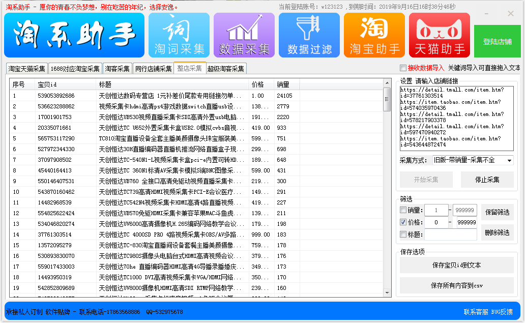 淘宝天猫采集、阿里巴巴采集、阿里妈妈采集、同行店铺采集、整店提取采集、同行爆款采集等。