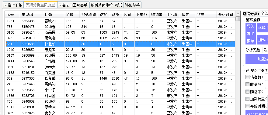 快速定时上下架、清理无流量、超级直通车、运费模板、天猫流量分析、天猫宝贝体检、违规杀手等。
